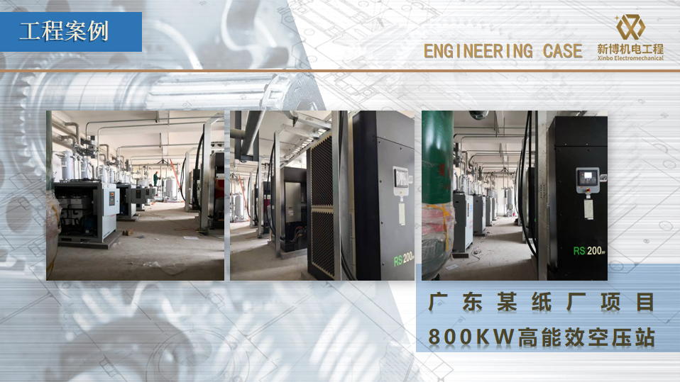 廣東新博機電工程有限公司成立于2010年6月,是一家集設計、研發、銷售、安裝工程及售后服務于一體的專業機電工程服務公司,經營產品包括空氣壓縮機系統設備、真空系統設備、制冷系統設備及其系統設計、安裝與維保服務;公司同時從事壓力管道、低壓配電、潔凈無塵車間的設計、施工與安裝工程。